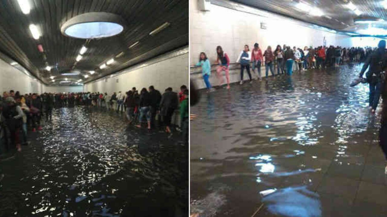 Decenas de ciudadanos quedaron atrapados por las aguas que corren por el corredor peatonal. Como si fuera poco, a los aguaceros se sumó el estancamiento que provocó la gran cantidad de basura en los desagües del túnel.