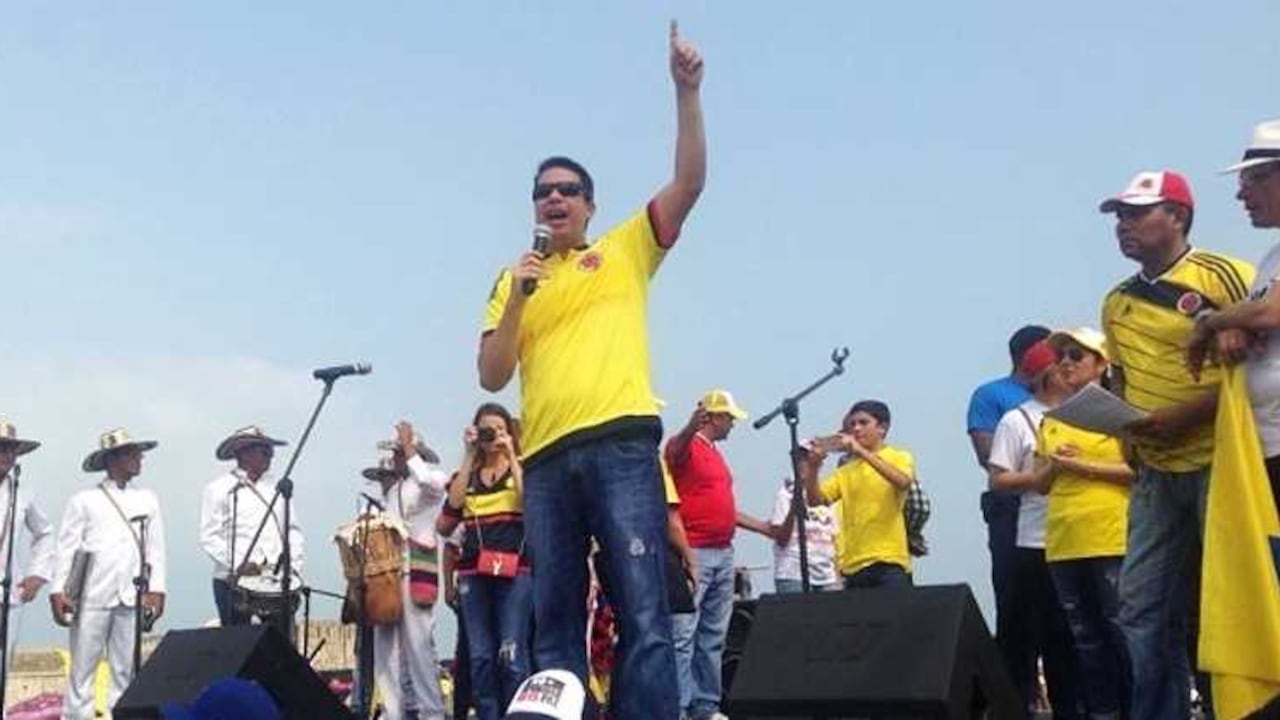 Arrázola desfiló en la tarima en la concentración que se hizo en las murallas de la ciudad, donde se reunieron los manifestantes tras la caminata que recorrió el centro histórico de Cartagena. Así lo registraron medios locales como Revistametro.com.
