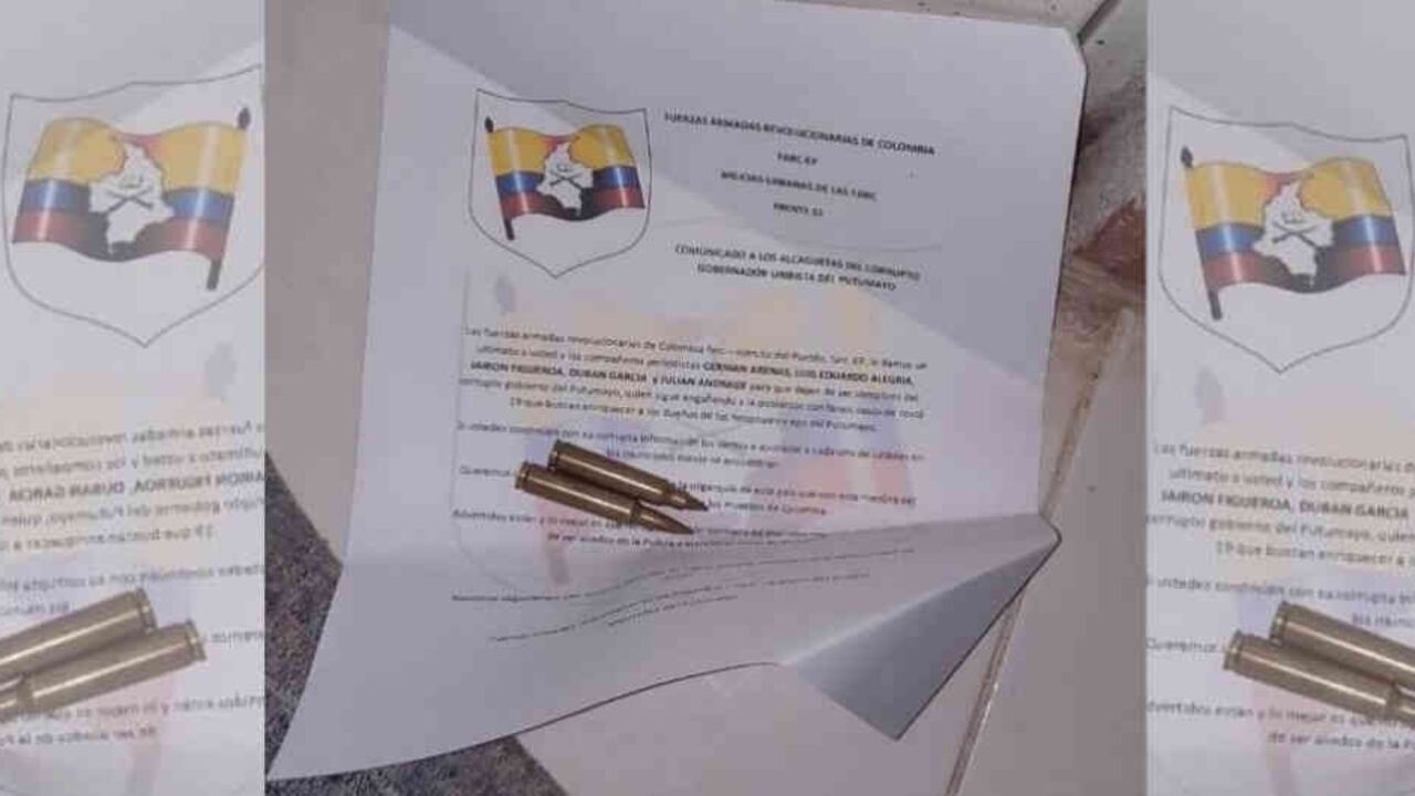De acuerdo con Anderson Escobar, presidente de la Corporación de Periodistas del Putumayo “el panfleto fue dejado por debajo de la puerta de la casa de uno de los colegas y señalan a los cinco comunicadores de ser auxiliadores del Gobernador de Putumayo, además se encontraron dos cartuchos de fusil calibre 556 que junto con el panfleto ya están en manos de las autoridades para que se investigue”, aseguró Escobar.