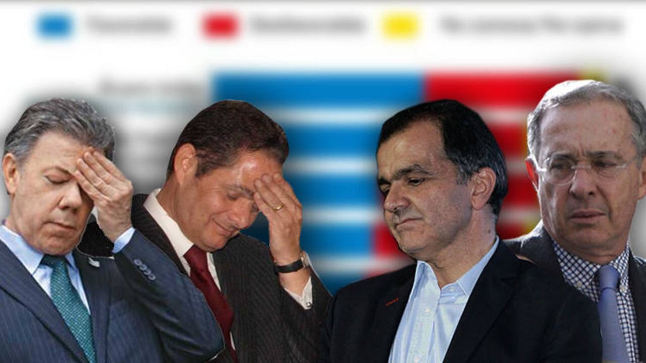 Álvaro Uribe, campeón en las encuestas, tampoco salió ileso. Aunque su imagen favorable sigue siendo superior a la desfavorable, esta se ubicó en el 46%, la más alta desde abril del 2015, según las encuestas de la firma Gallup.