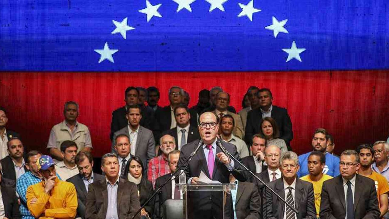 "Nicolás Maduro, en complicidad con una mayoría del Tribunal Supremo de Justicia y del Consejo Nacional Electoral, decidió cerrarnos todas las vías democráticas", dijo este lunes Julio Borges, presidente de la Asamblea Nacional y encargado de leer el documento.
