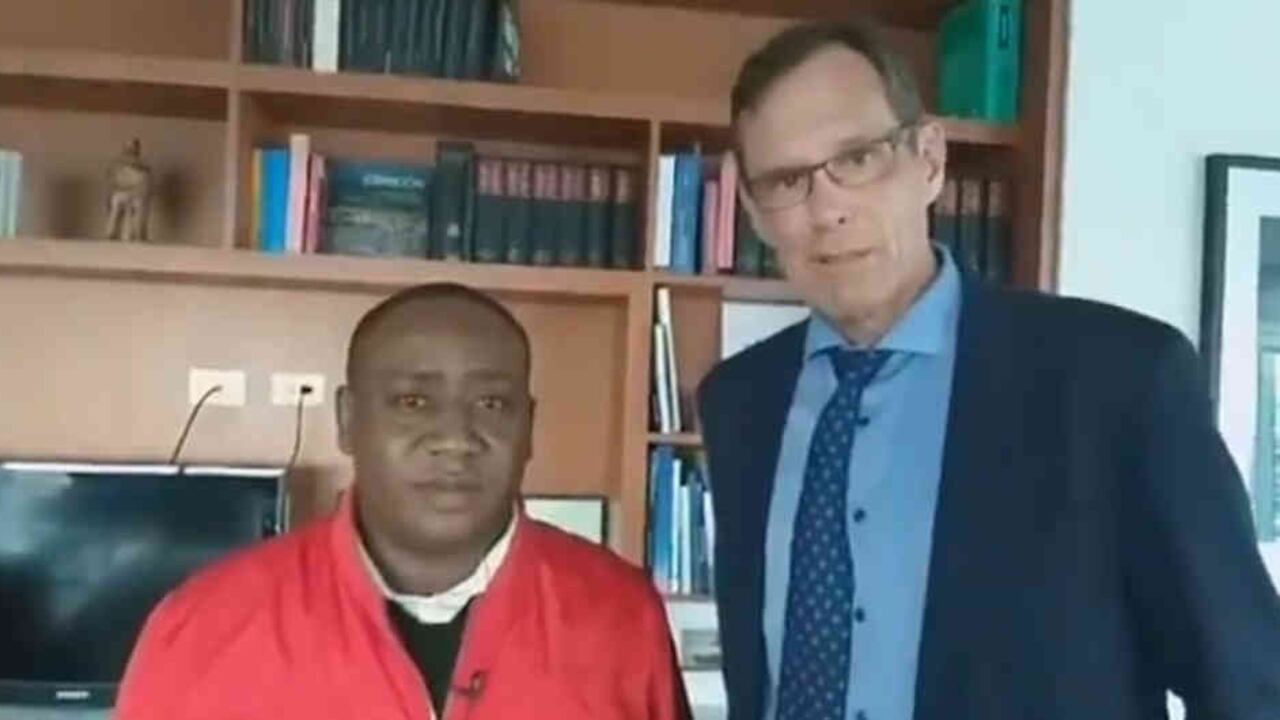 El embajador de Alemania en Colombia Peter Ptassek publicó en su cuenta de Twitter un video en el que aparece al lado del líder social, Leyner Palacios.