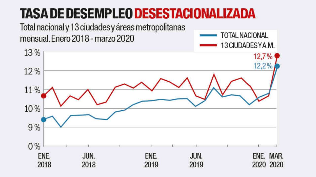 La tasa de desempleo urbano pasó de 12 a 13,4 por ciento en marzo, un aumento de 1,4 puntos porcentuales. Los sectores donde más cayó el personal ocupado abarcan actividades artísticas, de entretenimiento y recreación, así como industrias manufactureras y comercio.
