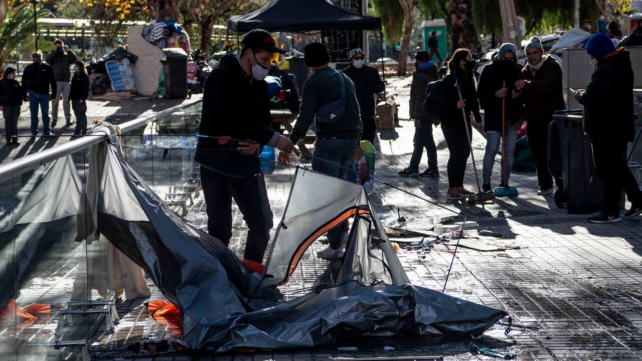 "El tema de movernos hacia los albergues fue porque la noche de ayer fue bastante dura; el frío aquí en Santiago es inclemente, se mojaron muchas carpas, muchas personas no pudieron ni dormir sacando agua de las carpas", dijo a la AFP, Jaime Mancipe, que reside en Chile desde el año pasado.