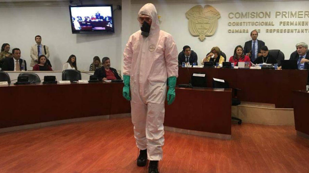 La posibilidad, cada vez más latente, de que se vuelva a la aspersión aérea con glifosato revivió el debate en el Congreso. Esta vez, en la Comisión Primera de la Cámara, el representante Harry González (Liberal) citó a un debate de control político a los jefes de cuatro ministerios: Defensa, Justicia, Ambiente y Salud. Con un recipiente de glifosato en la mano, el congresista los increpó.