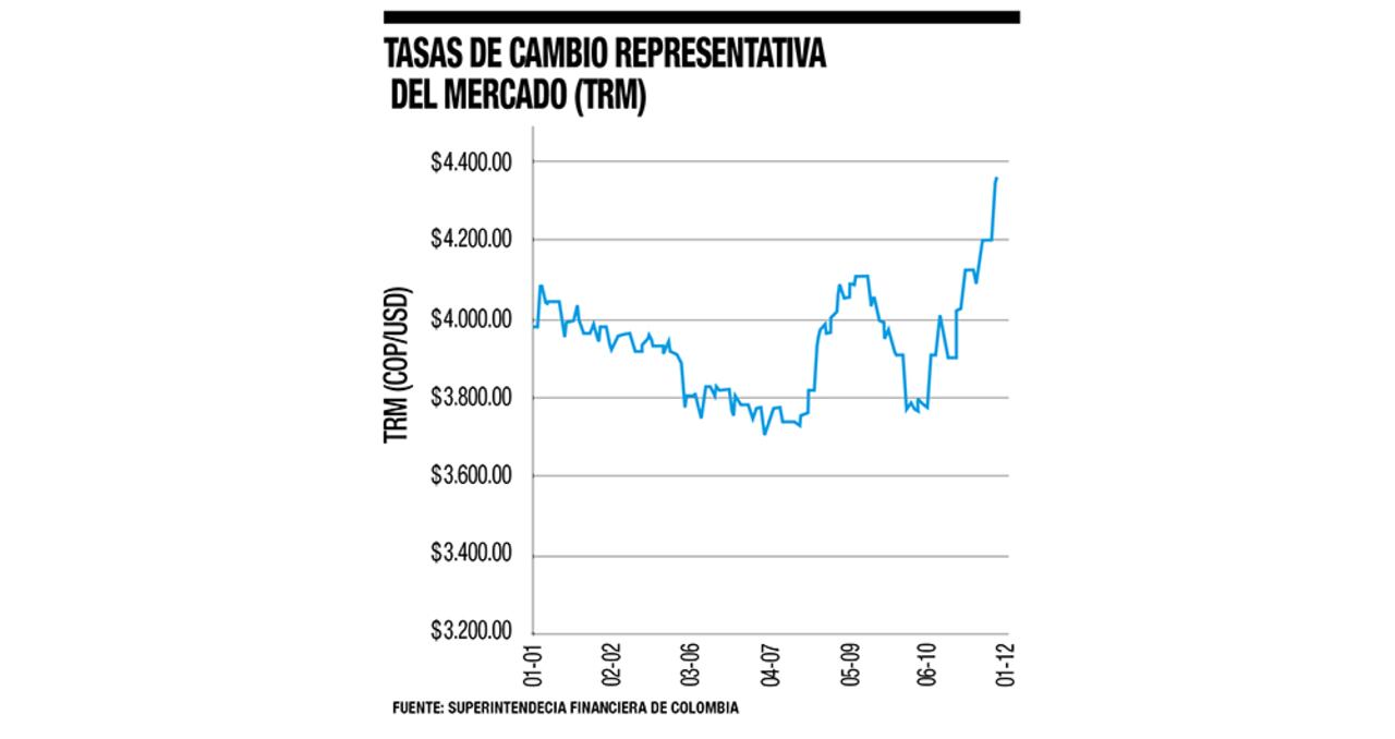 La expectativa es que la tasa de cambio siga subiendo, ante la incertidumbre global y las pocas claridades que ha dado el Gobierno de Gustavo Petro en materia económica. Los cálculos llevan el precio del dólar a máximos cercanos entre 4.500 y 4.600 pesos en el corto plazo, pero la expectativa es que se corrija hacia el final del año y quede por encima de los 4.000.En cuanto al Gobierno entrante, por ahora, los primeros mensajes en torno a la política petrolera –sin nuevos contratos de exploración y sin fracking– han generado inquietud en el que es hoy el mayor soporte fiscal de la economía nacional. También hay preocupación en el alcance que tendrá la reforma tributaria.