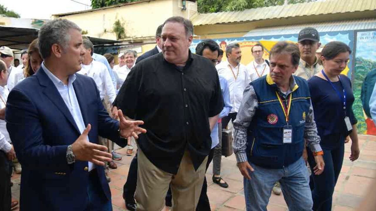 El secretario Pompeo, que realizó una visita por Suramérica que incluyó a Chile y Perú, se trasladó enseguida al Centro de Atención Transitorio para el Migrante (CATM), ubicado cerca de la zona fronteriza entre Colombia y Venezuela, donde se reunió con el presidente Duque.