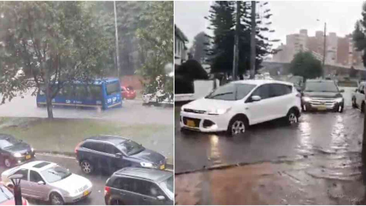 Estos pobres carros quedaron ahogados. Aguacero bravo en el sector de Usaquén, #Bogotá pic.twitter.com/rnA601gCRE