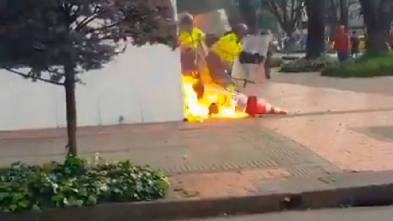 Estos delincuentes pueden llegar a matar a un policía o a cualquier trabajador o periodista de RCN en uno de estos ataques sistemáticos. Estos delincuentes intentaron quemar vivo a un policía, un ser humano que tiene familia. Autoridades deben actuar antes de que sea tarde. pic.twitter.com/fhPBz6OrG6