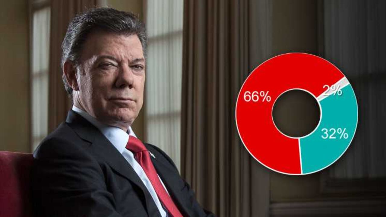 La gran encuesta Colombia Opina, de la firma Ipsos para la alianza RCN Radio, La FM Radio, Noticias RCN, y SEMANA reveló que luego del acuerdo para el cese al fuego bilateral y definitivo entre el Gobierno y la guerrilla de las FARC, firmado el pasado 23 de junio en La Habana, la imagen favorable del presidente Juan Manuel Santos es del 32 %, 7 puntos más que la medición del pasado mes de marzo, cuando la imagen del mandatario colombiano se desplomó al 25 %, una de las más bajas de los seis años de gobierno. Pese a ello, el 66 % de los consultados tienen una imagen desfavorable de Santos.