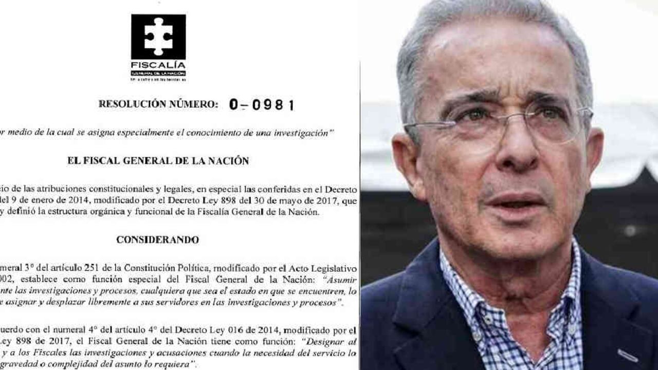 En esta resolución, el fiscal general le adjunta a Jaimes "las copias de la Instrucción 52240 que cursaba en la Sala Especial de Instrucción de la Sala Penal de la Corte Suprema de Justicia contra el otrora senador de la República, doctor Álvaro Uribe Vélez".
