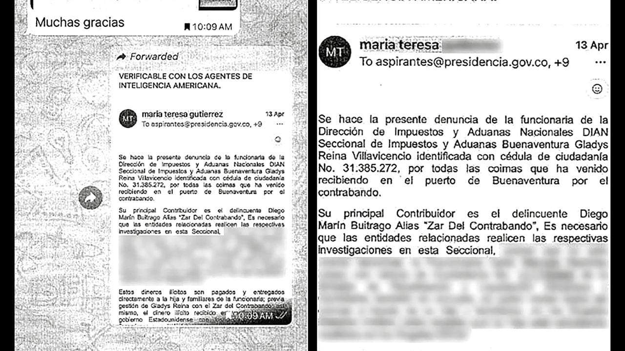 SEMANA conoció en exclusiva las pruebas de la orden de Laura Sarabia, entregada vía chat, en la que pide que sea nombrada Gladys Reina Villavicencio para la Dirección de Impuestos y Aduanas en Buenaventura, tal vez el cargo más importante de la entidad, en relación con el contrabando, por tratarse de uno de los puertos más grandes del país.