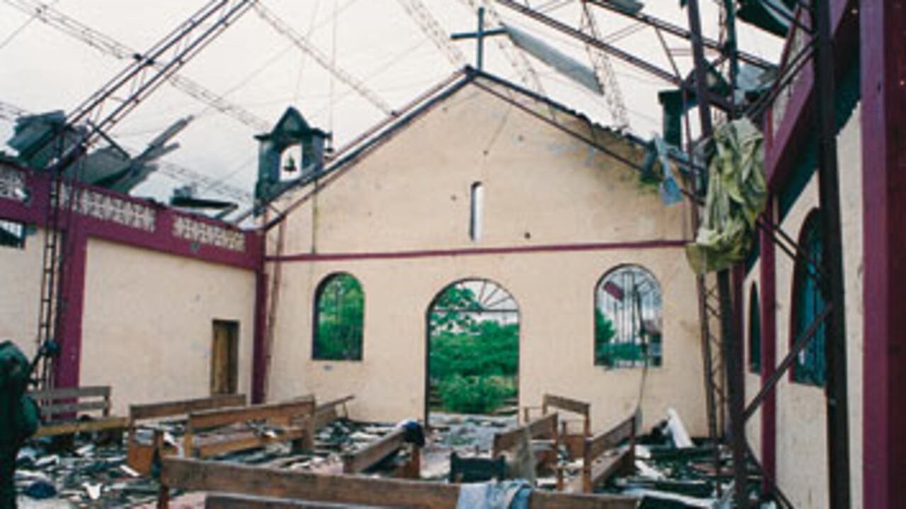 Uno de los cilindros bomba que fueron lanzados por los guerrilleros impactó directamente el templo, generando así una explosión. En el enfrentamiento también fue destruida la escuela de Bojayá y el centro de salud, causando un desplazamiento masivo de los sobrevivientes de esa tragedia.