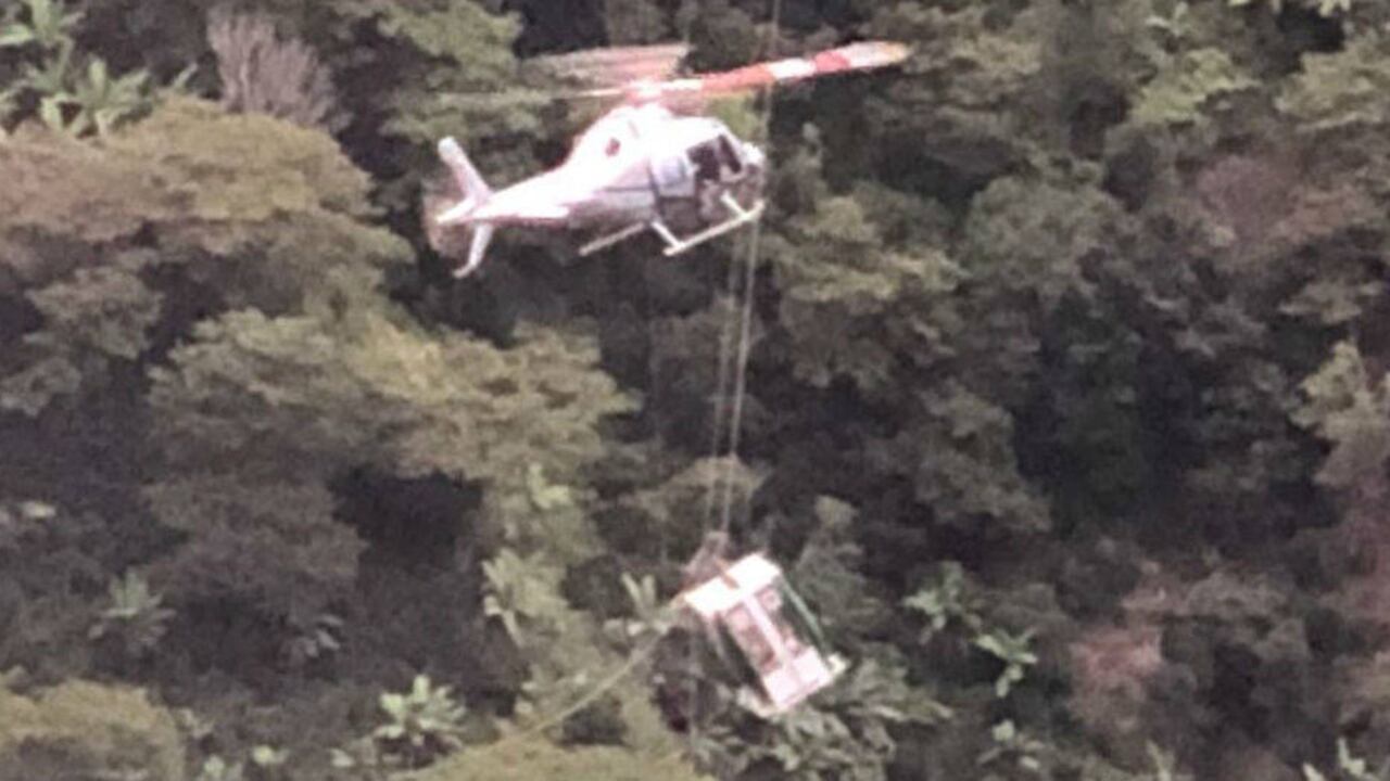 El miedo aumentó porque pasados unos minutos del accidente empezó a llover copiosamente, lo que dificultaba sobremanera el rescate. El director (e) del Departamento Administrativo de Gestión del Riesgo de Desastres de Medellín (Dagrd), Jaime Enrique Gómez, contó a los medios que a las 2:30 recibieron la llamada de emergencia e inmediatamente enviaron “un equipo especializado en rescate en altura, pero inicialmente hicieron una evaluación de las condiciones de riesgo para verificar la posibilidad de acceso”, la cual era muy difícil, por lo que intentaron hacer un rescate helicoportado que no fue exitoso, aunque sirvió para entregar a los afectados agua y comida.