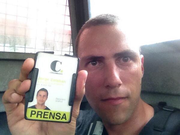 Minutos más tarde, el reportero gráfico subió una foto en la que mostraba su carné de prensa del diario El Colombiano, acompañada de otro tuit: “Voy en una tanqueta del ESMAD. Estoy bien, pero no sé a dónde me llevan”. Antes de que se apagara su celular, Vanegas alcanzó a trinar finalmente: “Estaba cubriendo la marcha del Día del Trabajo en Medellín, me acaban de quitar la cédula”.