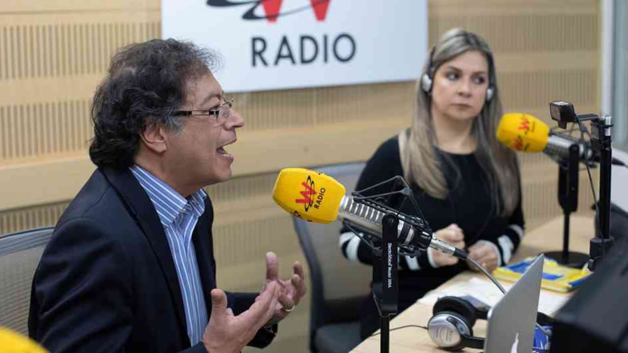 Mientras Petro hablaba, la cabina de la W estaba llena de periodistas de distintos medios, al menos unas 10 cámaras apuntaban directo al senador. Lejos de incomodarlo, Petro las observaba y cuando necesitaba concentrarse un poco más miraba a un punto fijo.