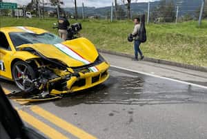 En algunas imágenes y videos que han circulado por las redes sociales, se observa al Ferrari en uno de los carriles de la vía totalmente destruido en su parte delantera.