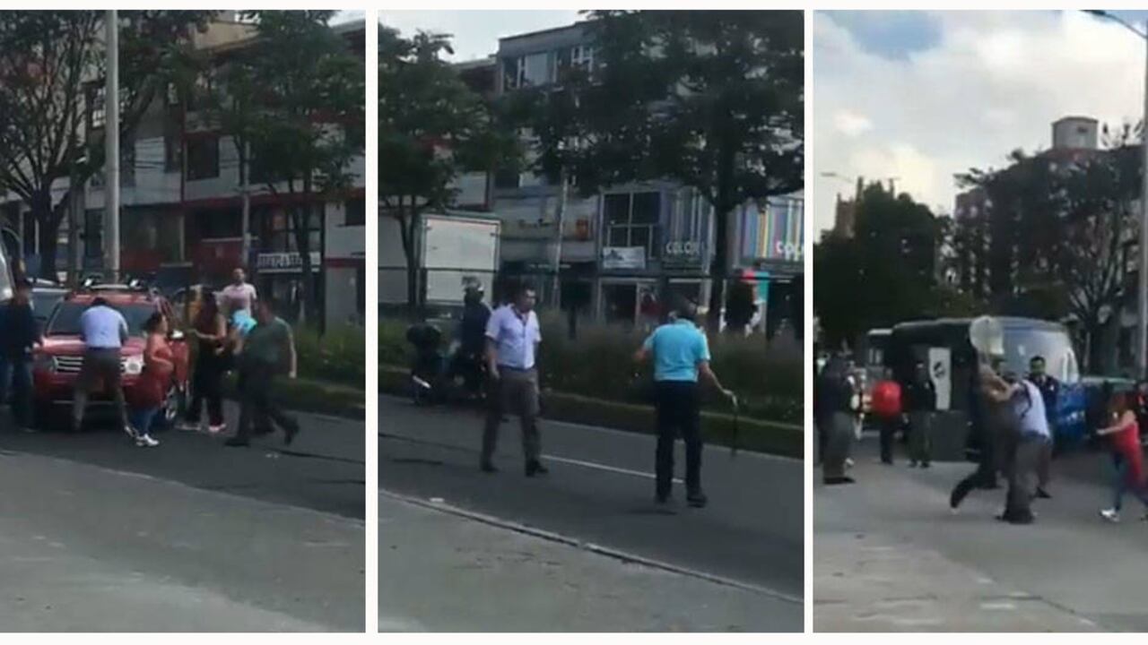 Con correas y palos en las manos, los involucrados, entre ellos una mujer, se agredieron en plena vía. Por la posición en la que quedaron el bus y el carro, la trifulca se habría presentado por un caso de intolerancia después de que los vehículos sufrieron un leve choque, lo que habría desencadenado la pelea.