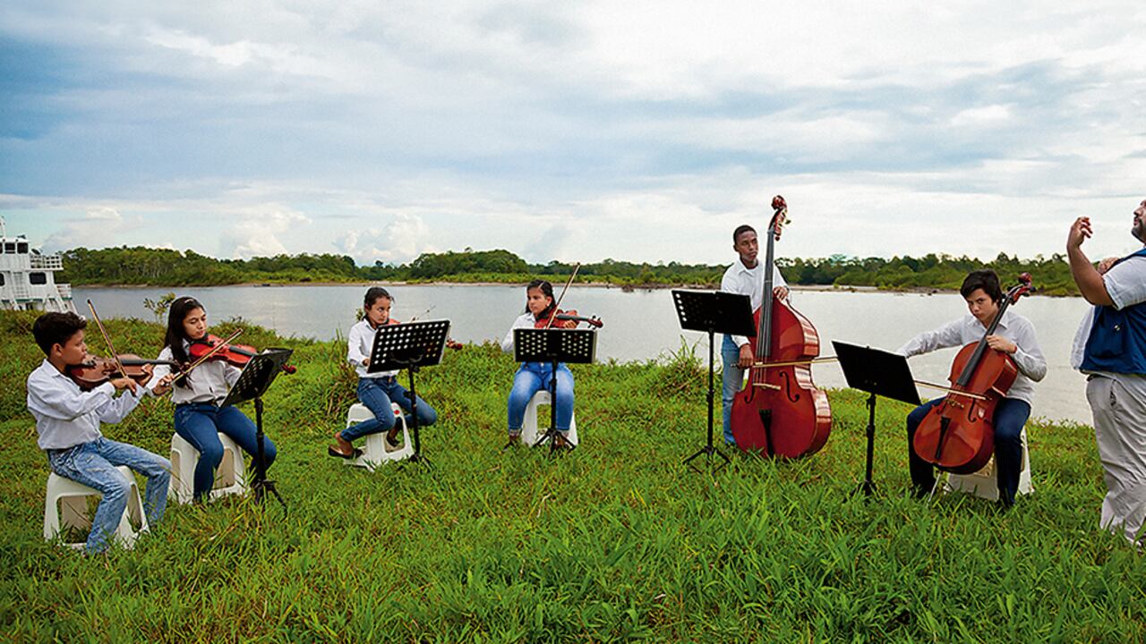 En Vichada no se quedan atrás. Pese a las agrestes condiciones geográficas, inundaciones y la ausencia de internet, o incluso de señal telefónica, 75 niños, 50 de ellos venezolanos, fueron preparados musicalmente, según relata Jenny Castiblanco, coordinadora de Gestión Social de Batuta en Puerto Carreño. Para hacerlo, además de la disciplina y el amor a la música, los pequeños debieron armarse de valor y destreza para sortear, una y otra vez, unas piedras gigantescas a orillas del río Orinoco que impiden llegar a la capital de Vichada, cuenta el profesor Morales.