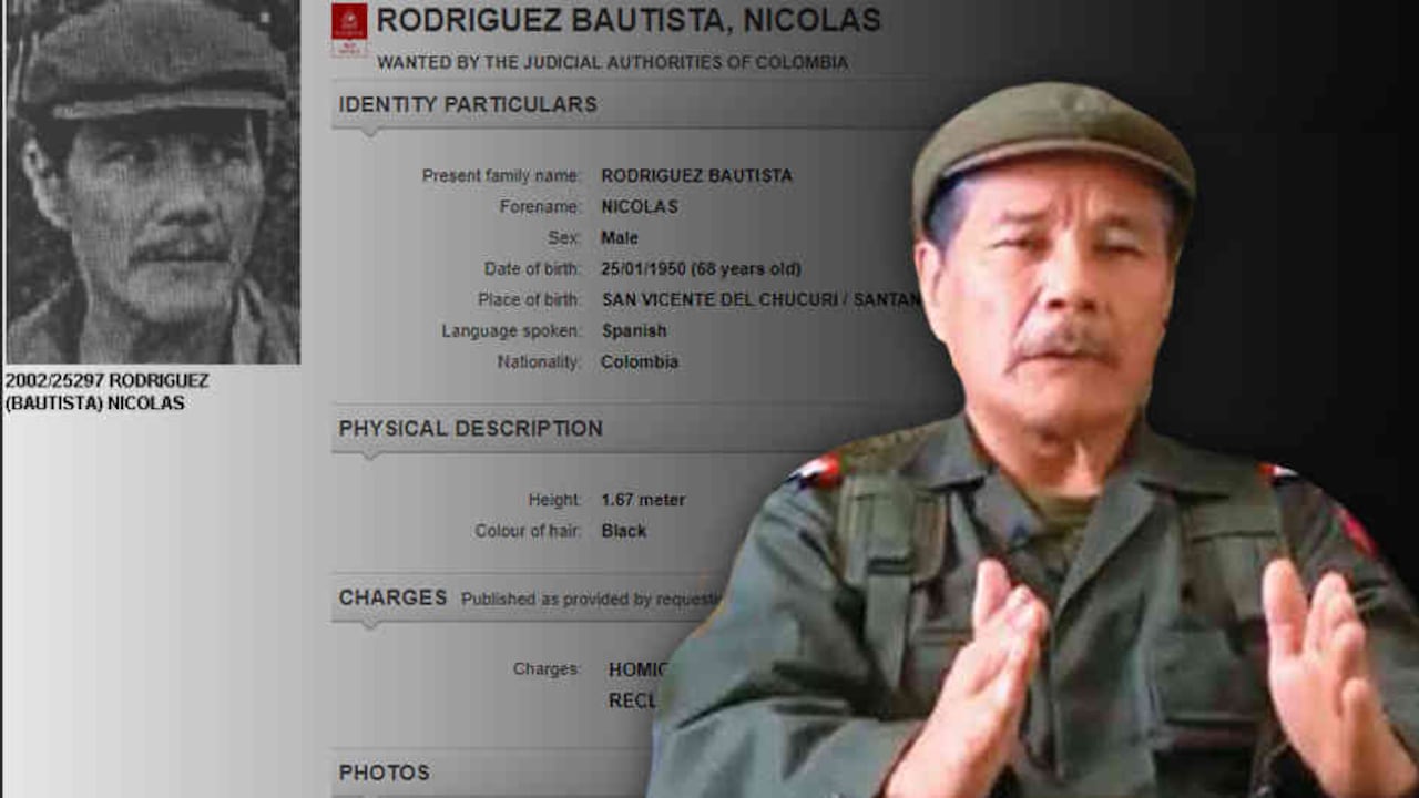 Las autoridades van tras el paradero de Nicolás Rodríguez Bautista. Este miércoles la Interpol emitió una circular roja contra el máximo líder del ELN por los delitos de homicidio agravado y reclutamiento ilícito. Con la medida se espera que la detención preventiva del jefe guerrillero se lleve a cabo donde sea que se encuentre.