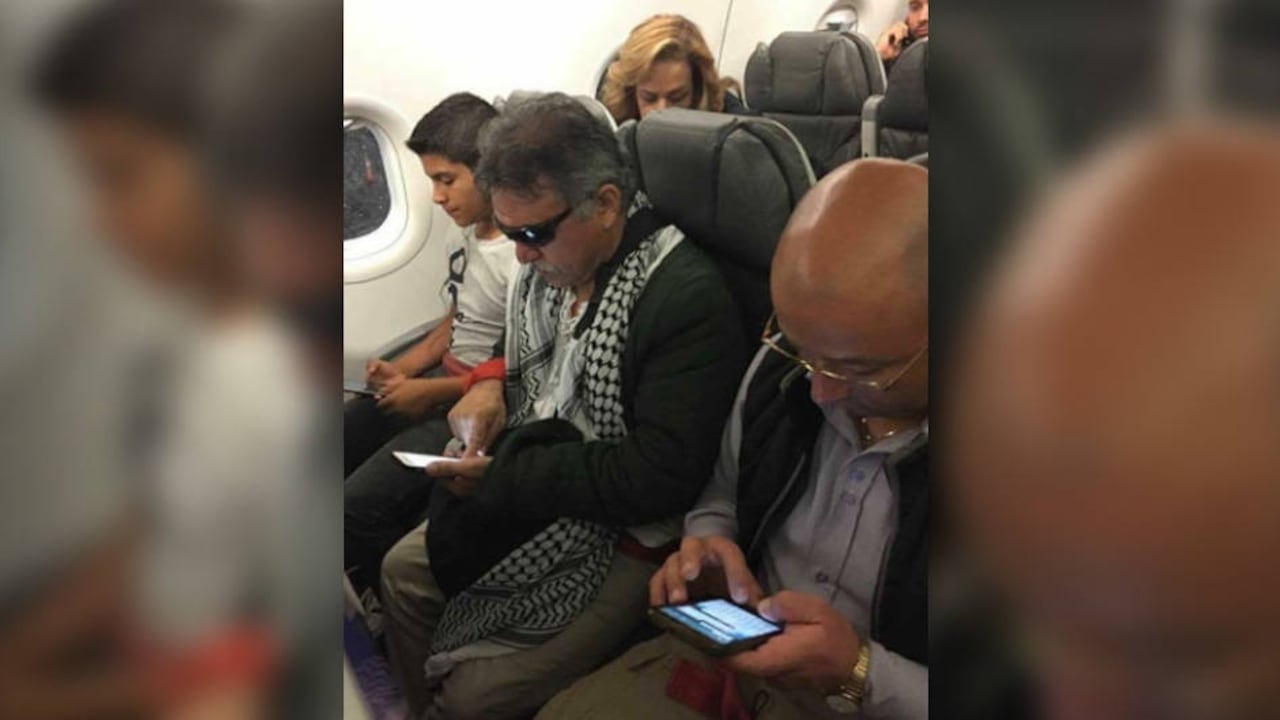 Sentado en medio de dos hombres que también tienen sus miradas clavadas en las pantallas de sus celulares retrataron al jefe guerrillero Jesús Santrich. La escena sería la misma de cada aeropuerto antes de despegar, sino fuera porque el lente captó a uno de los hombres más mediáticos que ha tenido las Farc desde que se sentaron a negociar en Oslo.