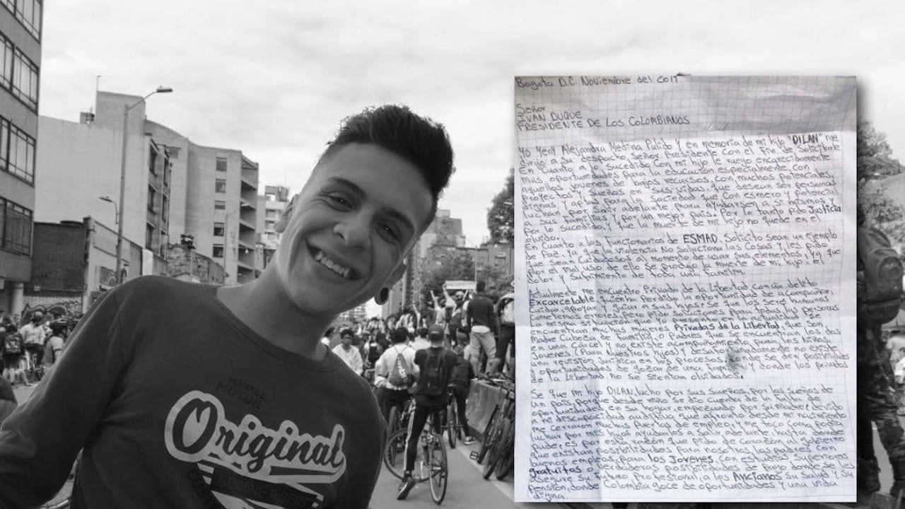 "Pido justicia para mi hijo y que su muerte no quede en el olvido. En cuanto a los funcionarios del ESMAD, pido que sean un ejemplo de paz, ya que la violencia no soluciona las cosas. Les pido que sean cuidadosos al momento de usar sus elementos, ya que por el mal uso de ellos se produjo la muerte de mi hijo, el dolor y el sufrimiento de toda una familia", dice la carta.