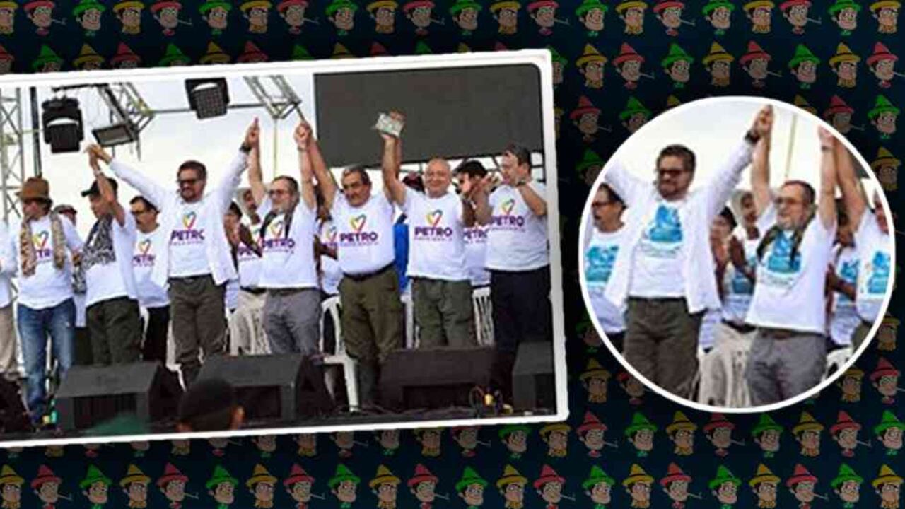Una foto en Twitter muestra a los jefes de ese grupo guerrillero con la camiseta de la Colombia Humana puesta. La imagen es un montaje.