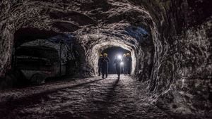 Las autoridades creen que una cuadrilla de mineros se interna 20 días para trabajar las 24 horas. Al cabo del tiempo es reemplazada por otra cuadrilla. Se calcula que siempre permanecen en la montaña cerca de 300 hombres. El minero que menos gana es el catanguero, dedicado a cargar el material. Puede recibir semanalmente 5 millones de pesos. El Clan del Golfo cobra al menos 10 por ciento de lo producido a todos los implicados en el proceso. Los constantes saqueos obligaron al grupo especial de la Policía que combate la minería ilegal, perteneciente a la Dirección de Carabineros (Dicar), a dejar las calles para patrullar bajo tierra. Allí las botas relucientes y el uniforme libre de cualquier mancha pasan a un segundo plano. De pies a cabeza están llenos de barro. Equipados con una pequeña luz pegada en su casco, chaleco antibalas, arma de dotación y escudos de protección se abren paso en los oscuros senderos de las minas.