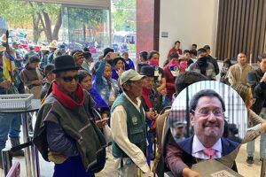 La minga amedrantó contra las instalaciones y recurrió a la violencia para ingresar. Los trabajadores de seguridad presentes en el primer piso vivieron momentos de absoluto pánico. Entre ellos, uno de los vigilantes resultó afectado tras recibir un ataque en su cuello.