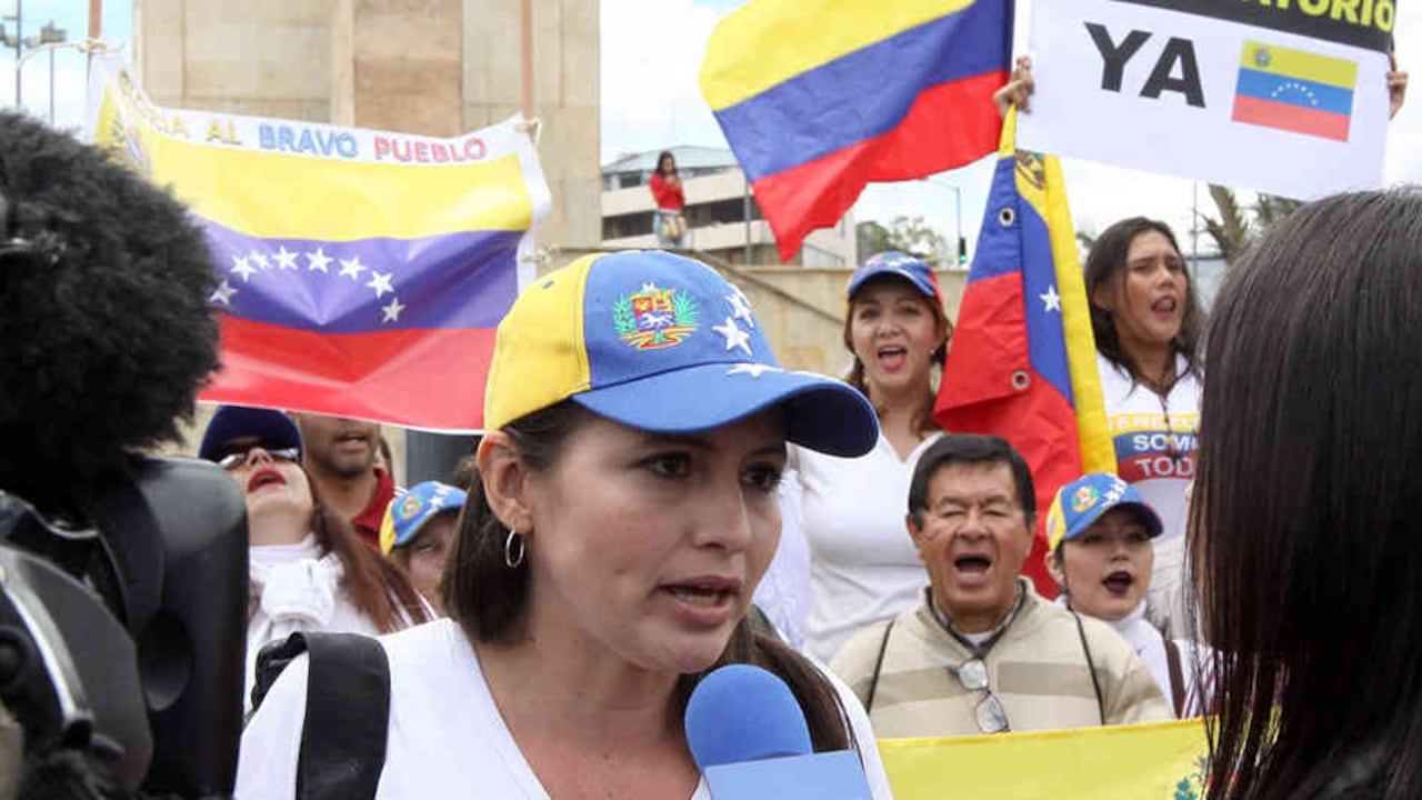 “Gloria al bravo pueblo que el yugo lanzó, la ley respetando la virtud y el honor”, cantaban los venezolanos que se reunieron el pasado miércoles frente a la casa del embajador de Venezuela en Colombia. Con carteles y pitos los asistentes se estaban uniendo a las manifestaciones que estaban sucediendo en el país que habían dejado.