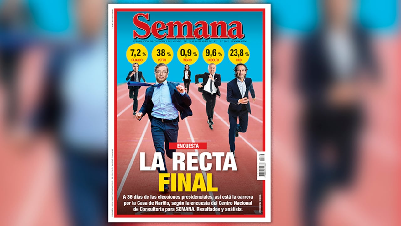 Después de meses de una intensa campaña y en medio de una dura polarización, la carrera por la presidencia entró en su recta final. El próximo 29 de mayo, los colombianos acudirán a las urnas para la primera vuelta. A solo cinco semanas, según la más reciente encuesta del Centro Nacional de Consultoría (CNC) para SEMANA, Gustavo Petro se consolida como puntero, con el 38 por ciento. Lo sigue Federico Gutiérrez, con 23,8 por ciento, a una distancia de 14,2 puntos porcentuales. Sin embargo, el exalcalde de Medellín duplica y más a Rodolfo Hernández, quien aparece en el tercer lugar, con el 9,6 por ciento. Mientras tanto, Sergio Fajardo, quien puso en marcha su “remontada”, sigue en el cuarto lugar, con el 7,2 por ciento, lo que significaría que su estrategia no le está funcionando. Íngrid Betancourt registra 0,9 por ciento, al igual que John Milton Rodríguez. Por su parte, Luis Pérez obtiene 0,4 por ciento, y Enrique Gómez, 0,3 por ciento. El voto en blanco reporta 7,6 por ciento; por ninguno, 2,1 por ciento; y no sabe o no responde, 8,8 por ciento.