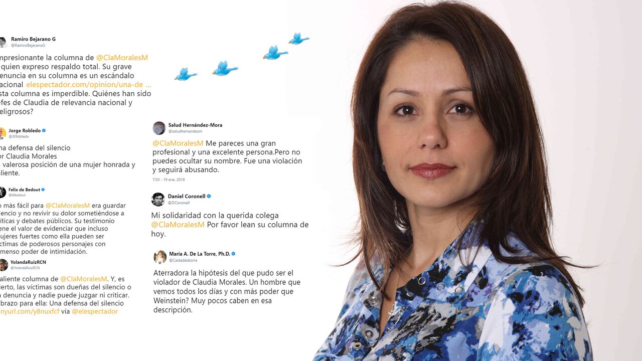 "Si una mujer valiente como @ClaMoralesM no identifica a su violador es porque conoce muy bien el nivel de impunidad con que actúa y la capacidad de intimidación de “Él”. Conozco a Claudia, el silencio es para proteger a su familia y ese silencio le duele a ella más que a nadie", trinó el periodista Felix de Bedout. En esa misma línea reaccionó su colega Ilia Calderón: "La columna de @ClaMoralesM no fue escrita para saciar el morbo de quienes quieren saber un nombre. Claudia le está dando voz a aquellos que deciden callar. El silencio, los motivos y el temor de las víctimas deben ser respetados".