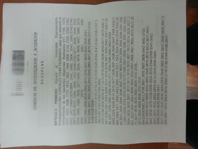 Y durante los minutos que duró su presidencia dictó su única resolución: el reparto de todos los expedientes que están en curso en la Comisión. Y para sorpresa, Acuña se adjudicó más de 400 expedientes, mientras a sus otros 14 compañeros de Comisión les entregó muy pocos procesos. Por ejemplo, la representante Angélica Lozano le correspondieron apenas 65 (ver resolución).