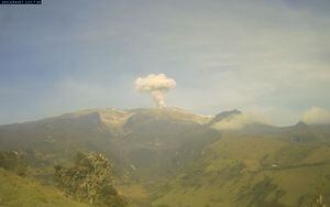 “La altura máxima de la columna de gases y/o ceniza observada fue de 1200 m, medidos desde la cima del volcán con una dirección de dispersión preferencial hacia el suroriente”, agregó el Servicio Geológico.