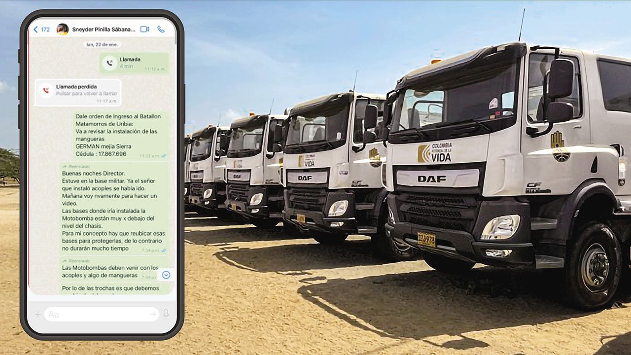 De hecho, SEMANA conoció un chat que Olmedo López le habría enviado a Sneyder Pinilla, el 22 de enero del año pasado, en el que le pidió darle “orden de ingreso al Batallón Matamoros de Uribia: va a revisar la instalación de las mangueras. Germán Mejía Sierra”, y con el nombre envió su número de cédula. Esto deja en evidencia la cercanía del Manchi con los entonces directivos de la UNGRD.