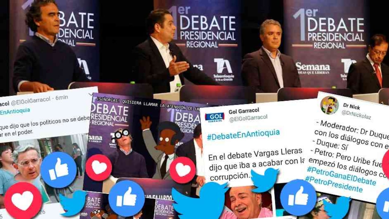 El debate, organizado por SEMANA y Teleantioquia, fue la oportunidad para que los candidatos hablaran sobre el sistema judicial, corrupción, medio ambiente y propuestas polémicas que ellos han presentado en sus programas de gobierno. Sin embargo, en las redes sociales, los ciudadanos aprocecharon la ocasión para rescatar con humor los mejor momentos del encuentro.