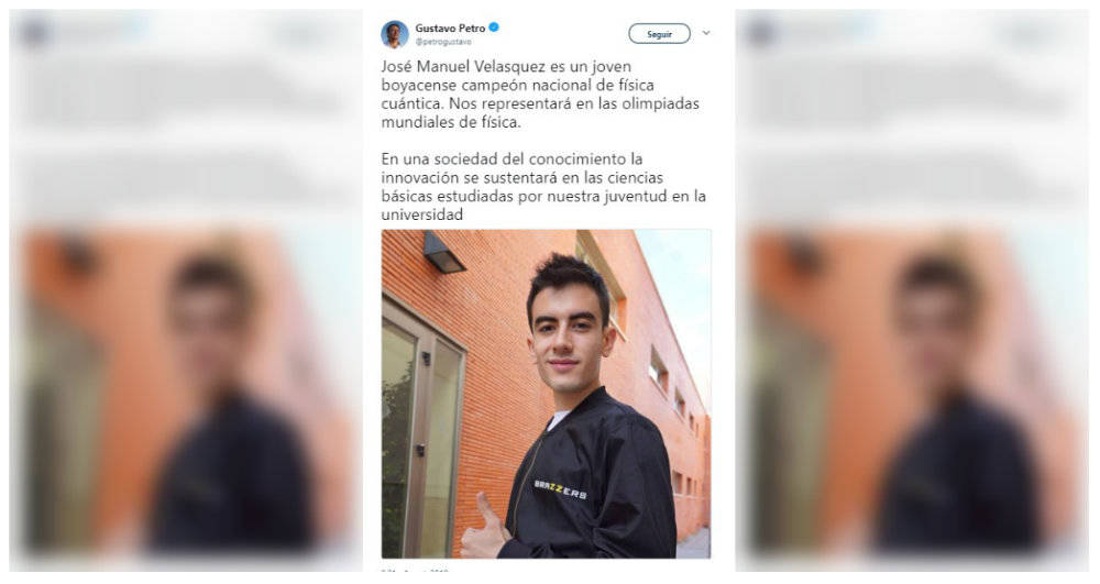 El senador Gustavo Petro publicó en su cuenta de tu Twitter la fotografía de un hombre que según él era “un joven boyacense campeón nacional de física cuántica”. Sin embargo, la chaqueta con el logotipo de “Brazzers” que llevaba el joven lo delataba. Petro había caído en una de las noticias falsas de las redes y en este caso había compartido la imagen de Jordi, “el niño polla”, un actor porno norteamericano. Al darse cuenta del error, Petro eliminó el trinó, pero se tomó el error con humor y respondió a una publicación de Actualidad Panamericana sobre el tema.