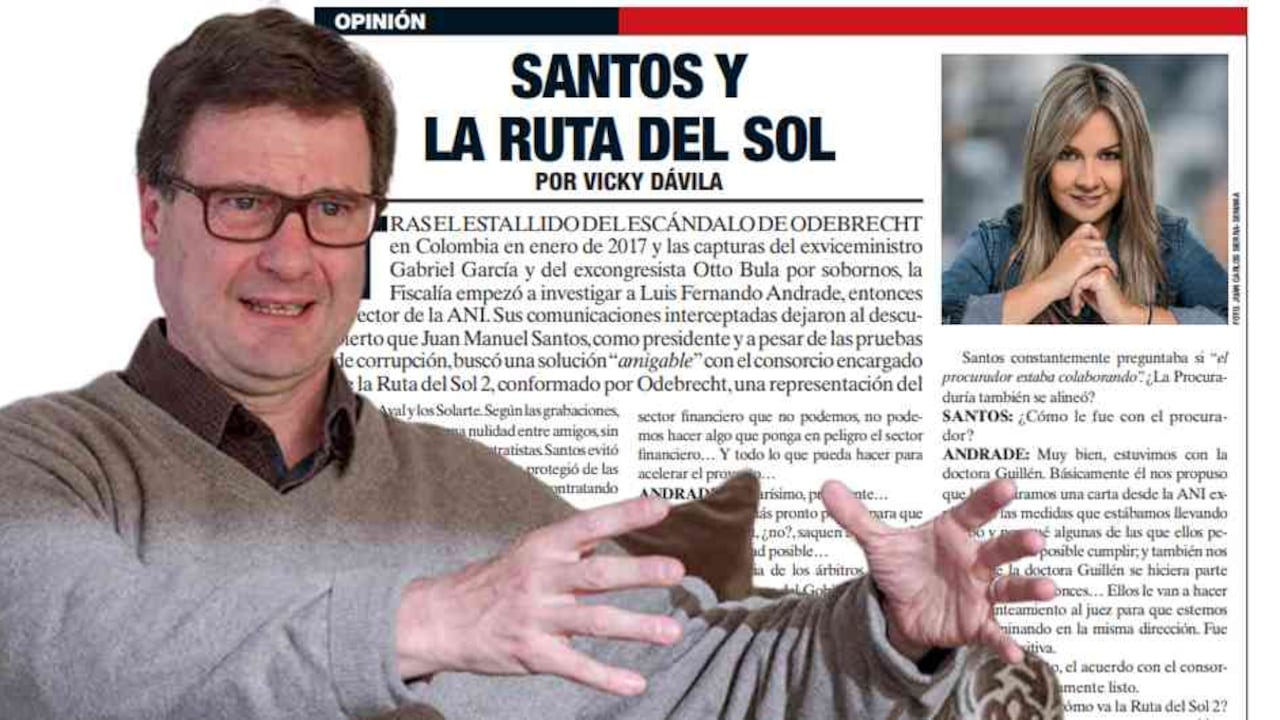 En su columna “Santos y Ruta del Sol”, publicada el pasado 4 de agosto, la periodista Vicky Dávila salta a una serie de conclusiones basándose en apartes de una conversación telefónica tomados fuera de contexto. Según sus conclusiones, yo sería parte de un “contubernio… para que todos los intervinientes marcharan en la misma línea, la del menor daño posible a los contratistas (Odebrecht y Grupo Aval, los socios de Ruta del Sol, Sector 2)”. Nada puede ser más lejano de la verdad.