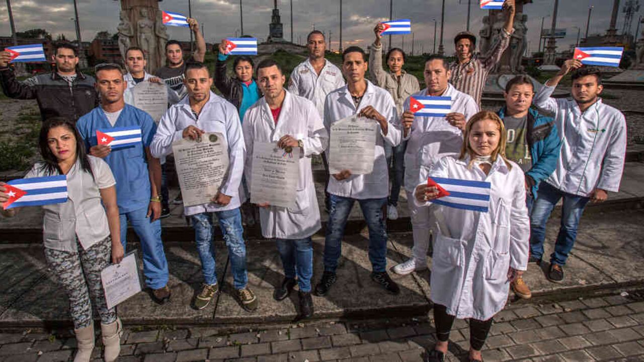 Óscar Alonso Oduardo tiene 26 años y es médico intensivista. Llegó a Bogotá en diciembre y desde entonces ha tomado la vocería del grupo. “Una vez que uno deserta de la misión médica comienza un viaje sin retorno porque la primera sanción es que no podemos volver a Cuba en los próximos ocho años. Calculamos que somos cerca de 200 médicos cubanos varados en Bogotá, y aunque algunas personas nos colaboran otras simplemente nos echan a la calle”, asegura.