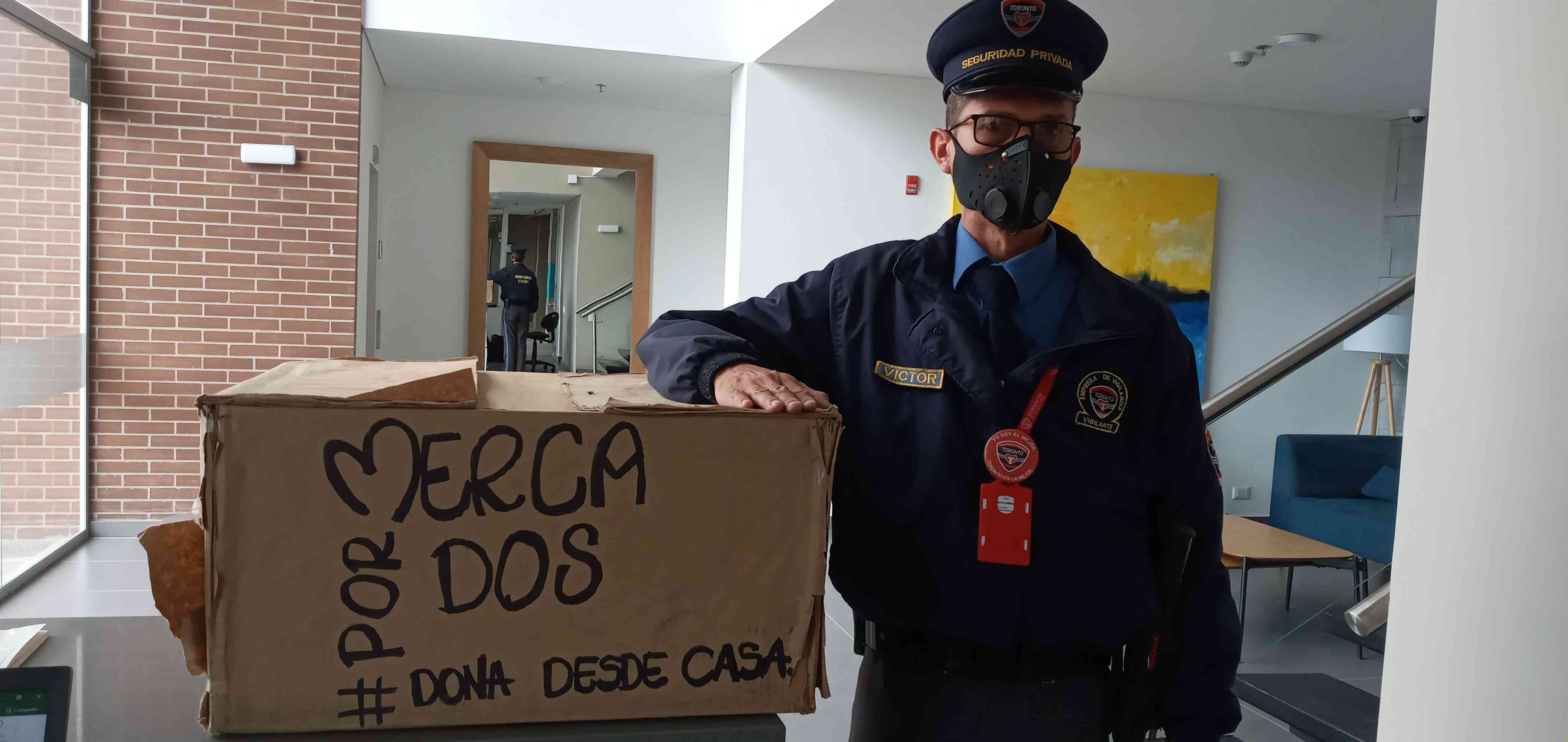 ¿Cómo funciona? En conjuntos residenciales de estratos cuatro, cinco y seis se instalan, con el aval de las administraciones, cajas de MERCAPORDOS #donadesdecasa para que las personas dejen allí los alimentos. Luego, personal de la fundación los recoge y organiza la logística de empaque y entrega.