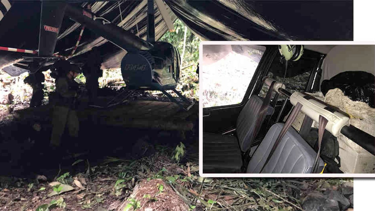 El miércoles de la semana pasada, la Dijín y la Policía Antinarcóticos, junto con las autoridades de Panamá, terminaron una operación en las selvas de Urabá. Después de varias semanas de seguimientos e intercambio de información de inteligencia, los comandos llegaron a un lugar en la manigua cerca al municipio de Acandí. En una parte deforestada y bajo una inmensa carpa negra de plástico encontraron un helicóptero Robinson R44 cargado con casi 300 kilos de coca. Era la primera vez que los curtidos agentes se encontraban con algo así.