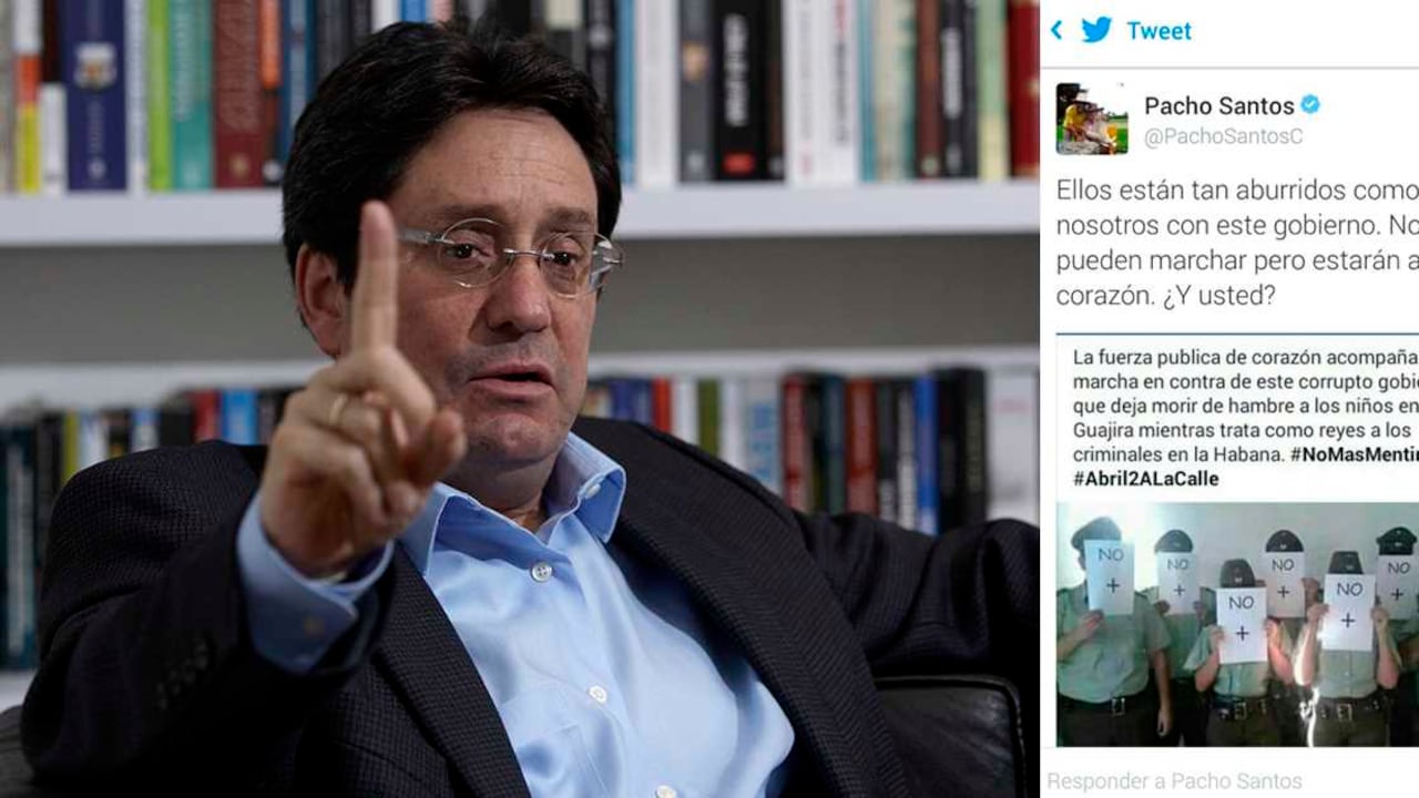 Pacho Santos ha vuelto a cometer un craso error en las redes sociales, y cómo no, se lo han cobrado. En un trino que publicó el jueves, para invitar a la marcha convocada por el uribismo para este sábado 2 de abril, quiso dar a entender, o mejor, aseguró, que miembros de la Policía estaban apoyando, “de corazón” esta movilización.
