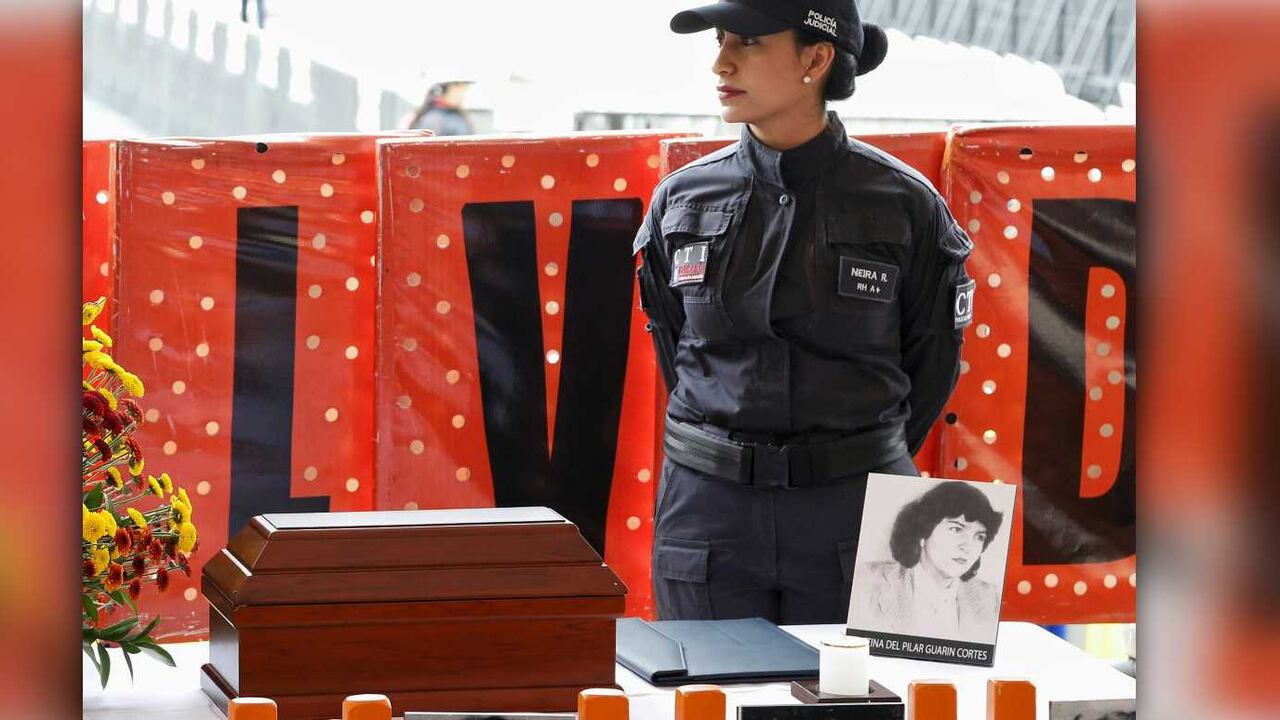 En las afueras del Palacio de Justicia, los restos de Cristina, quien hoy 9 de septiembre cumpliría 58 años, fueron entregados a su hermano René Guarín.