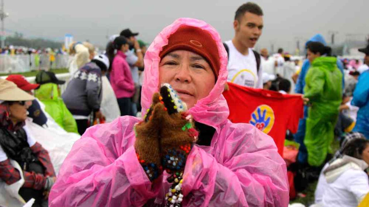 Después de este leve encuentro con los mandatarios locales, el papa recorrió la pista del aeropuerto en medio de los vítores de los fieles, que esperaban clamorosos la bendición papal. El mensaje de Francisco, basado en el pasaje en que los fariseos acusaban a Jesús y sus discípulos de no respetar el día de reposo —sábado—, giró alrededor de la premisa cristiana del amor hacia el prójimo y de que la Iglesia debe ir más allá de las normas rígidas: “En Colombia hay tantas situaciones que reclaman de los discípulos al estilo de vida de Jesús (…) La Iglesia no es una aduana, quiere las puertas abiertas porque el corazón de su Dios no está solo abierto sino traspasado por el amor que se hizo dolor”.