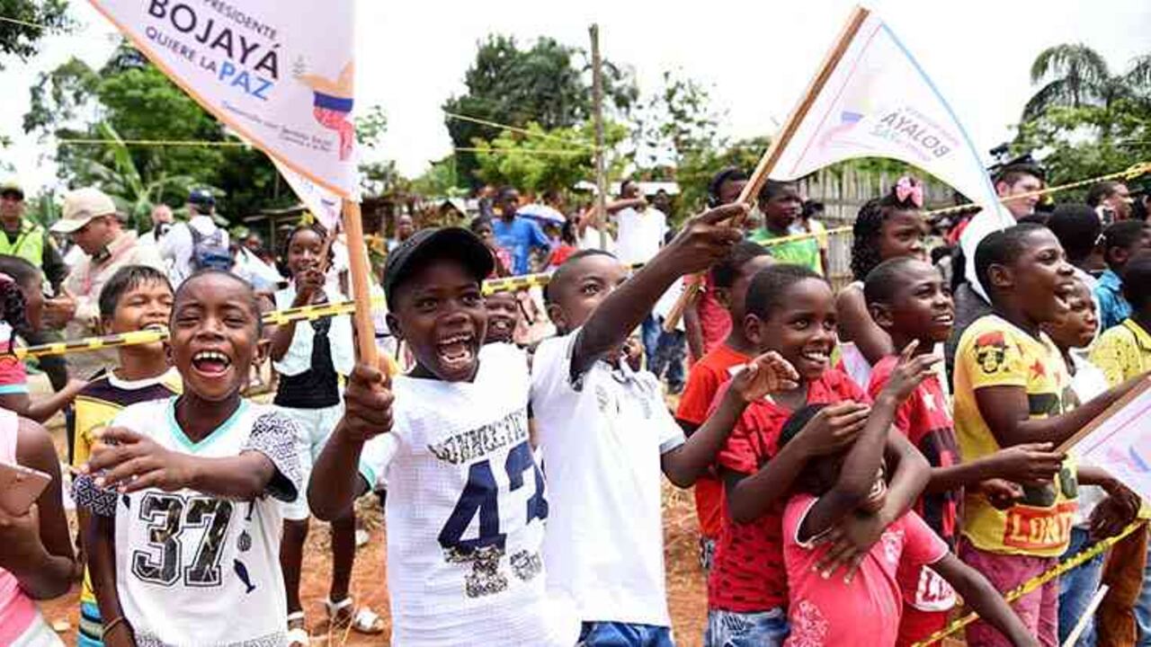 Cuentan que el viernes la sonrisa comenzó a florecer de nuevo. Si hay un pueblo en Colombia que conozca el secreto para levantarse después de caer, una y otra vez, es Bojayá. Puede ser porque a diario ven cómo el cielo azul, sin avisar, se pone cárdeno y deja caer una tormenta como la que despidió a Santos en su primer acto como Nobel de paz. Pero saben que, también sin avisar, tras la última gota, el sol vuelve a alumbrar.