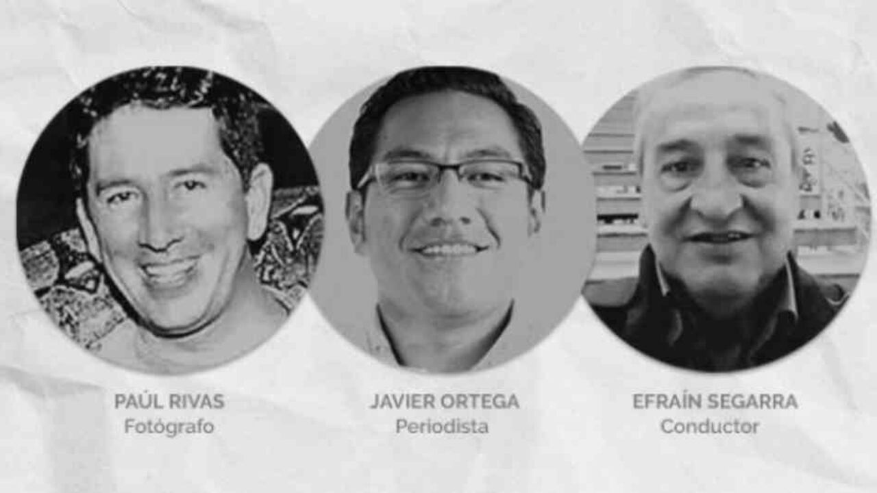 El secuestro del periodista Javier Ortega, de 32 años, el fotógrafo Paúl Rivas, de 45 años, y el conductor Efraín Segarra, de 60 años de edad, todos de nacionalidad ecuatoriana, al parecer, terminó en tragedia. Este miércoles, un comunicado del frente Oliver Sinisterra, una disidencia de las Farc que opera en el suroccidente del país, dio la noticia del cruel crimen. Un día después, el Canal RCN recibió fotos de los tres trabajadores del diario El Comercio, y se las remitió a la Fundación para la Libertad de Prensa, que asegura que las imágenes dan cuenta de los homicidios.