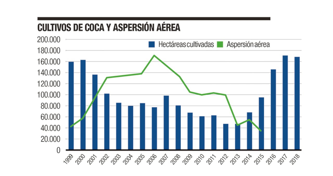 ¿Qué evidencia existe para apoyar o rechazar cada una de estas posibles explicaciones? Vamos por partes. En cuanto a la hipótesis de que fue la suspensión de la aspersión aérea con glifosato, la evidencia empírica disponible, si algo, no la soporta. Primero, los cultivos de coca empezaron a crecer dos años antes (desde 2013) de la suspensión del programa de aspersión. Segundo, las cifras históricas agregadas sobre la correlación entre cultivos de coca y aspersión aérea muestran que, a pesar de que entre 2000 y 2006 pareciera existir una relación inversa entre las dos variables, entre 2007 y 2013 la aspersión aérea disminuyó drásticamente, al pasar de 170.000 hectáreas en 2006 a 47.000 en 2013, pero eso no impidió que los cultivos de coca continuaran disminuyendo en este periodo. Evidencia que contraría la idea de que a mayor aspersión menor número de cultivos.