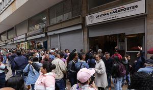 Cientos de ciudadanos ya venían protestando por las larguísimas colas que se formaron en las últimas semanas luego de que la licitación para continuar elaborando los pasaportes colombianos fuera declarada desierta, y la gente acudió masivamente a renovar su documento previendo el caos a partir del día 2 de octubre, o sea hoy, para su expedición cuando se vencía el permiso a la compañía Thomas Greg & Sons y el contrato de los pasaportes.