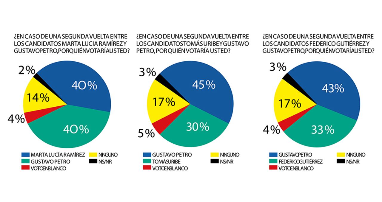 Mientras tanto, Petro derrotaría a los demás, excepto a Marta Lucía Ramírez, con quien habría un empate.