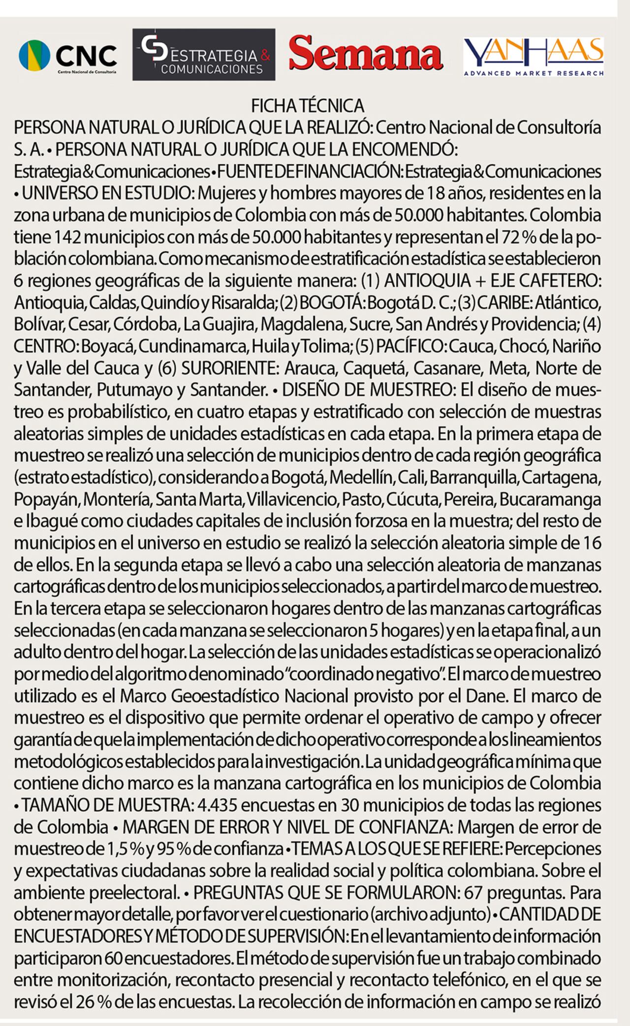 A 14 meses de las elecciones presidenciales de 2022, nada está escrito. Así lo revela el gran estudio electoral de SEMANA, una investigación sin antecedentes en la historia de los medios de comunicación del país que fue realizada por el Centro Nacional de Consultoría, con la auditoría de Yanhaas y la coordinación de Estrategia y Comunicaciones.